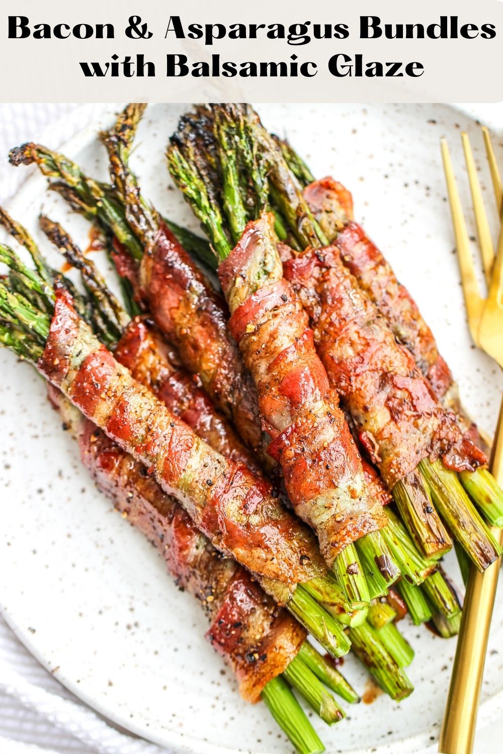 - When the bacon & asparagus bundles are done in the oven, drizzle or brush the balsamic reduction on them Add additional pepper and sea salt flakes if desired (depends on the saltiness of the bacon you use)
