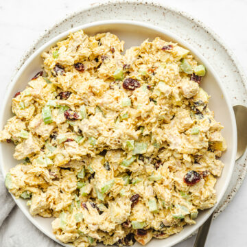 This curry chicken salad has been a family favorite for so long. I even have friends that request it! It is super easy to make but truly has so much flavor. It is a great option for lunch or dinner. You can eat it over greens, on a sandwich or straight out of the bowl!