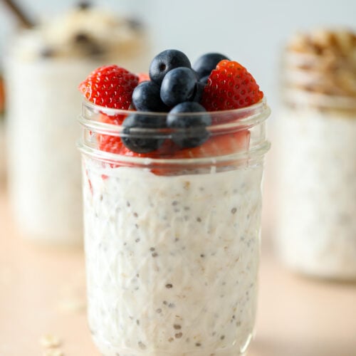 This is my favorite easy overnight oats recipe. It the perfect base for so many different flavor options and can be meal prepped for the week ahead. I love that it is a high fiber, high protein breakfast that is absolutely delicious.