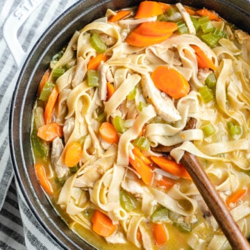 - Gluten Free Noodles – my all-time favorite gluten free noodles to use (the ones pictured) are from Jovial. We love the egg tagliatelle for a more traditional version. I recommend sticking to a brown rice pasta and not a lentil or chickpea based noodle. Those tend to fall apart quickly in the broth.
