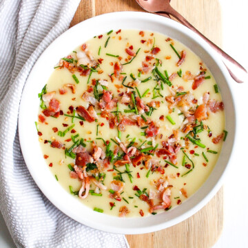 - Serve with crumbled bacon and chives